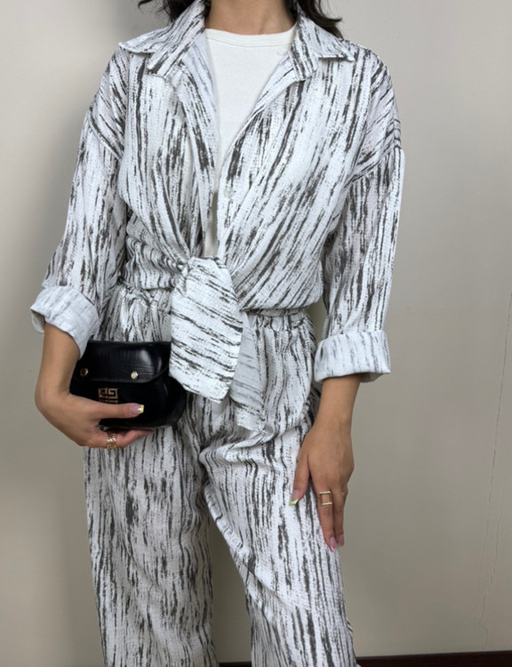 (دور سینه : ۱۱۲،دور باسن : ۱۱۲،دور بازو : ۴۶،قد آستین : ۵۰،قد کار : ۷۵)